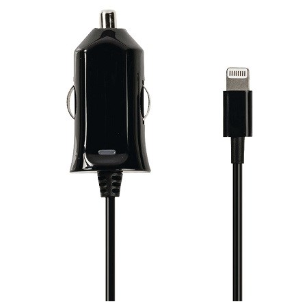 Lightning Charger for the Car - Lightning Male - 12 V Cigarette Lighter - 1 m - Black 2.4 A