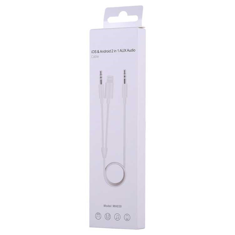 The 1-meter 2-in-1 audio cable can be used with both iOS and Android devices.