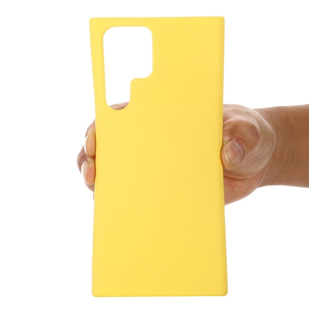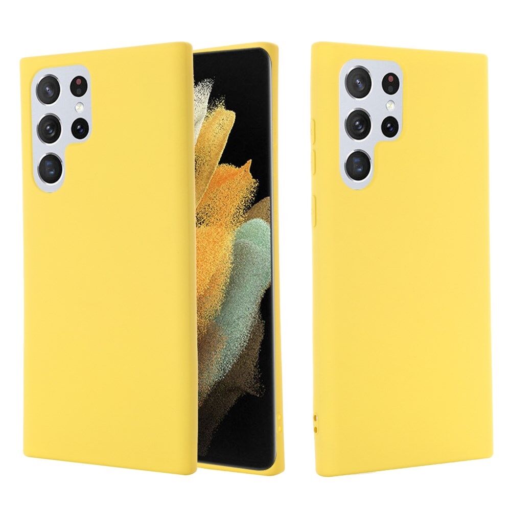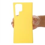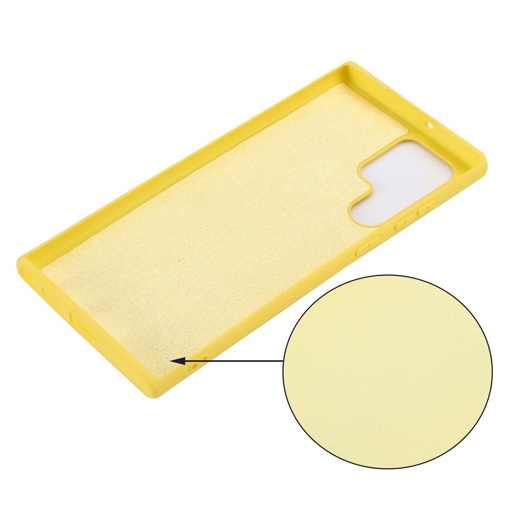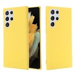 Liquid Silicone Microfiber Lining Mobile Phone Back Case Cover with Strap for Samsung Galaxy S22 Ultra 5G - Yellow
