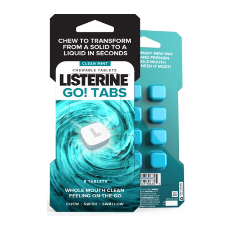 Listerine Go! Tabs are a whole new way to clean your mouth on the go.
