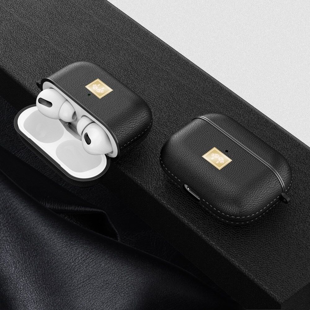 Litchi Pattern PU Leather Coated TPU Shell Protector with Keychain Earphone Cover for AirPods Pro