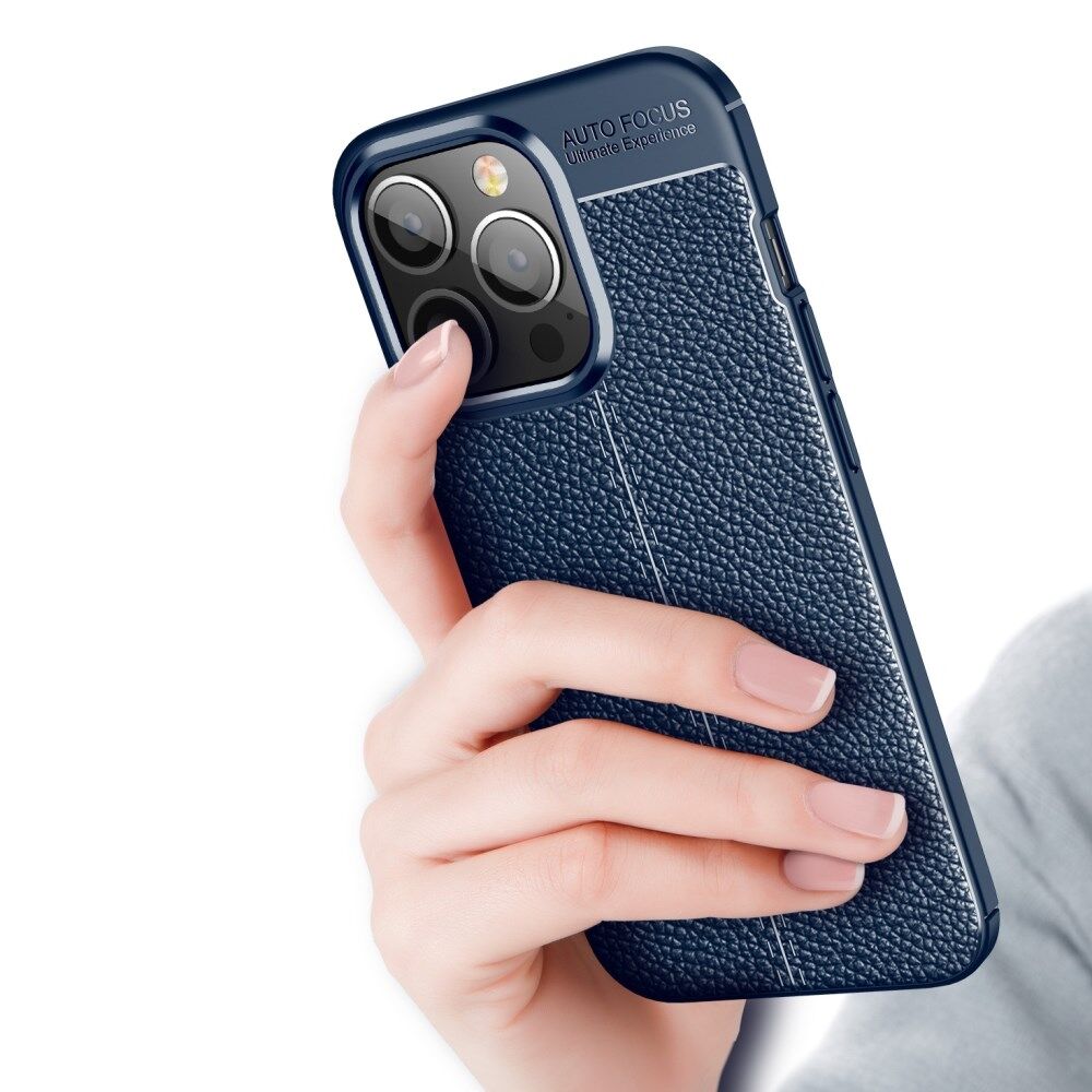 Litchi Texture Flexible TPU Cell Phone Case Protective Cover for iPhone 13 Pro 6.1 inch - Blue