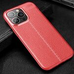 Litchi Texture Flexible TPU Cell Phone Case Protective Cover for iPhone 13 Pro 6.1 inch - Red