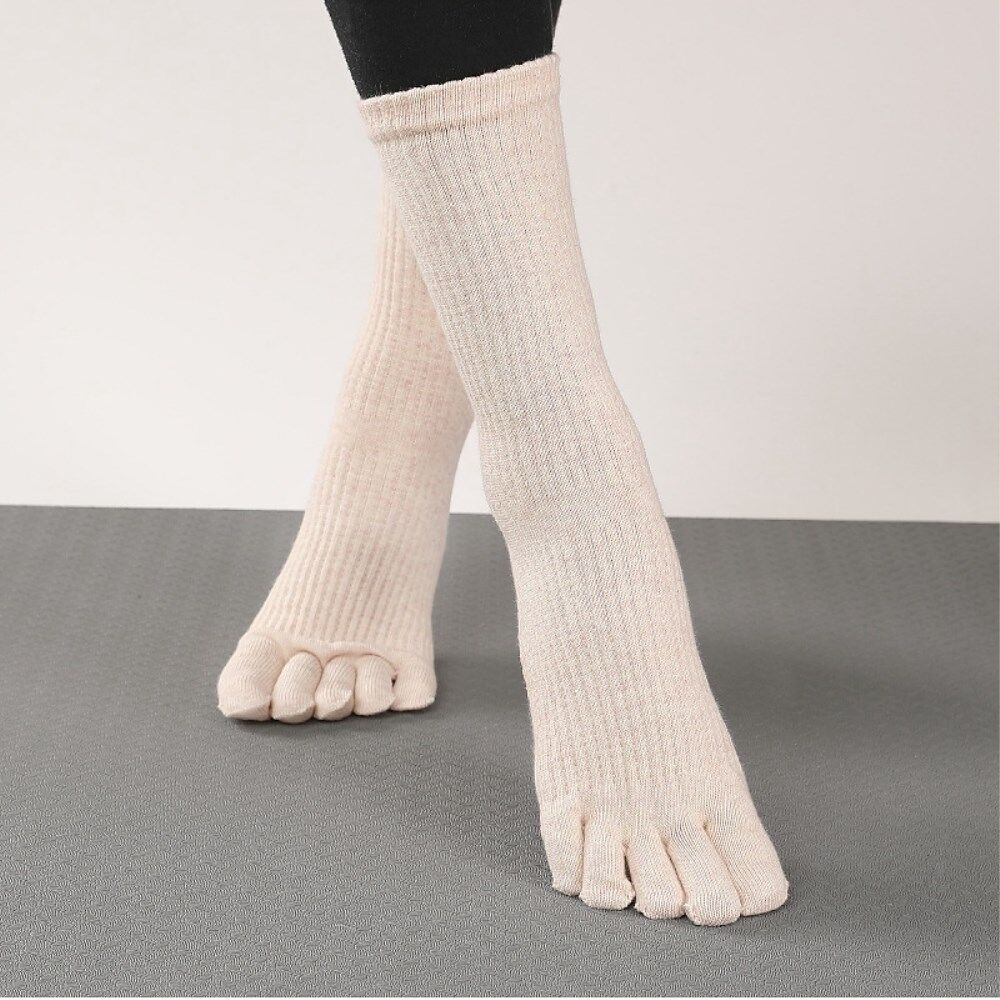 Long Sleeve Yoga Toe Socks for Women Anti-Skid Five Finger Socks with Grip Five Toe Socks Cotton Non-Slip Fitness Socks for Yoga Pilates Ballet Dance (Size: 34-38) - Beige