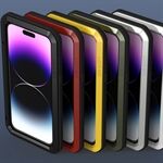 LOVE MEI For iPhone 14 Pro Max Silicone + Metal Shockproof Dust-proof Case Full Protection Splash-proof Phone Cover with Tempered Glass Film
