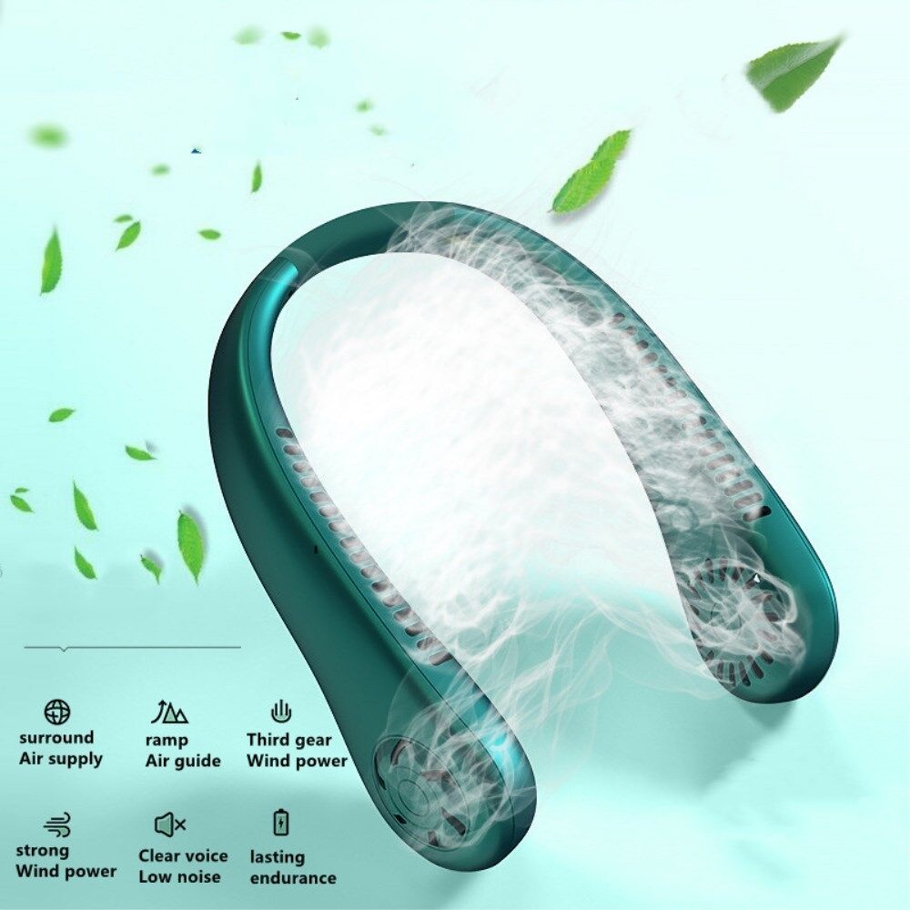 Low Noise Neck Fan USB Rechargeable Mini Cooling Fan 3 Wind Speed Portable Summer Cooler - Blue