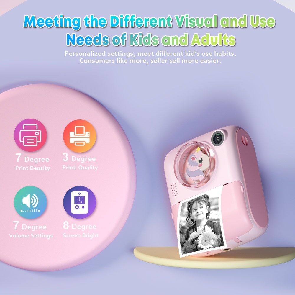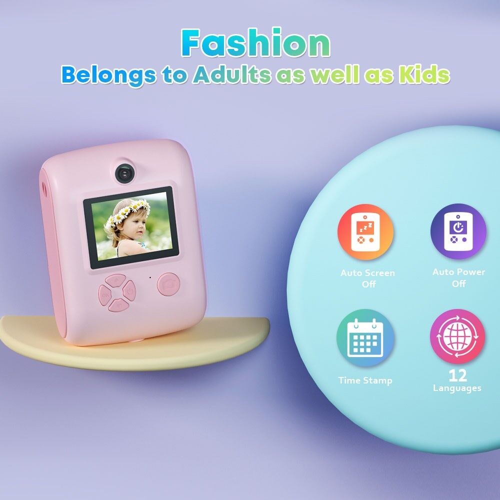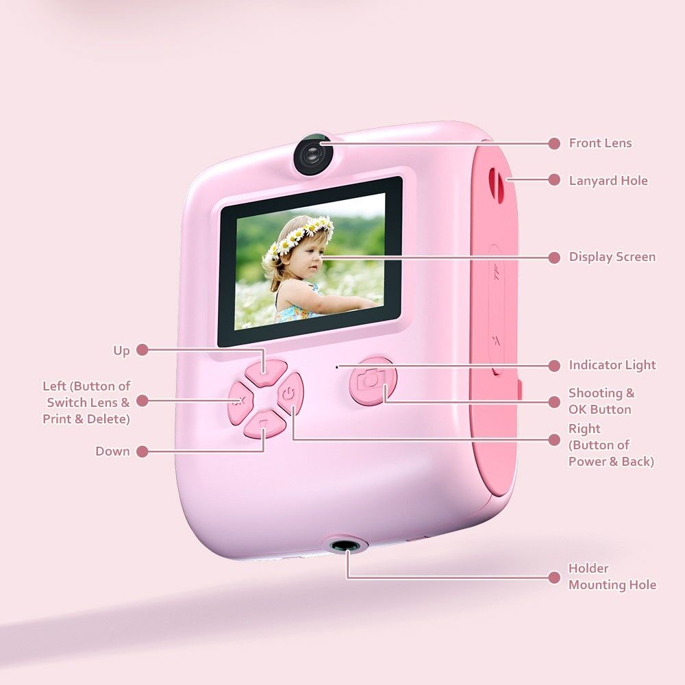 M1 Kids Instant Print Camera 2.0" IPS Screen Digital Cartoon Camera HD Selfie Dual Lens Camera Support 1920x1080P  Resolution