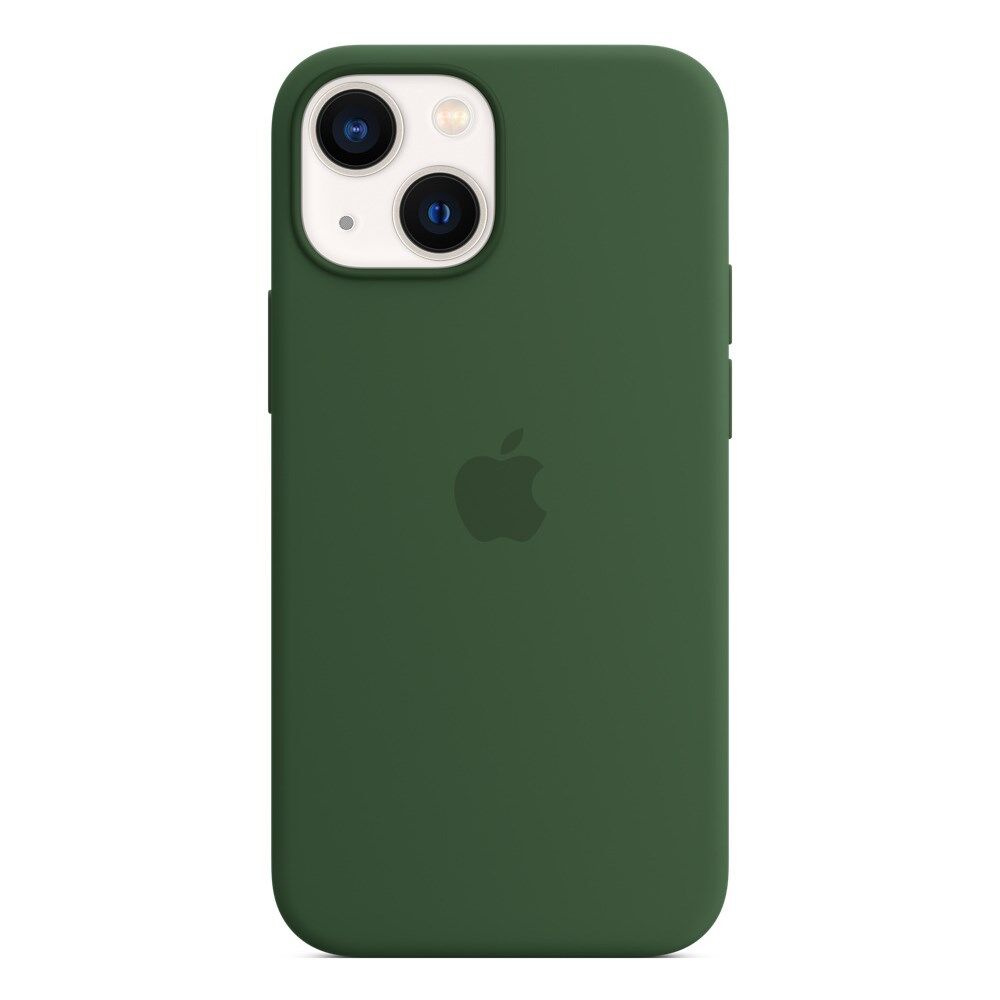 Magnetic Absorption Cell Phone Protector Liquid Silicone Phone Case Cover Compatible with MagSafe [Induction Popover] for iPhone 13 mini 5.4 inch - Blackish Green