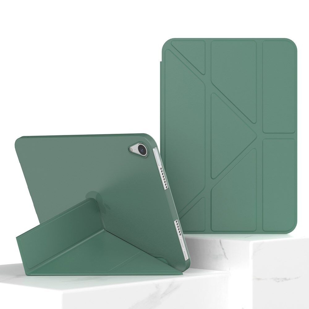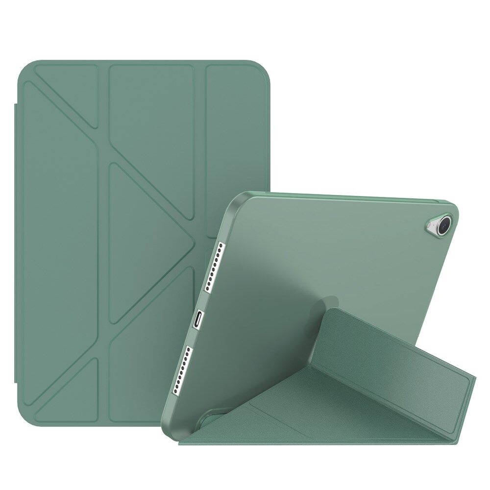 Magnetic Absorption Origami Smart TPU + PU Leather Case Tablet Cover for iPad mini (2021) - Midnight Green