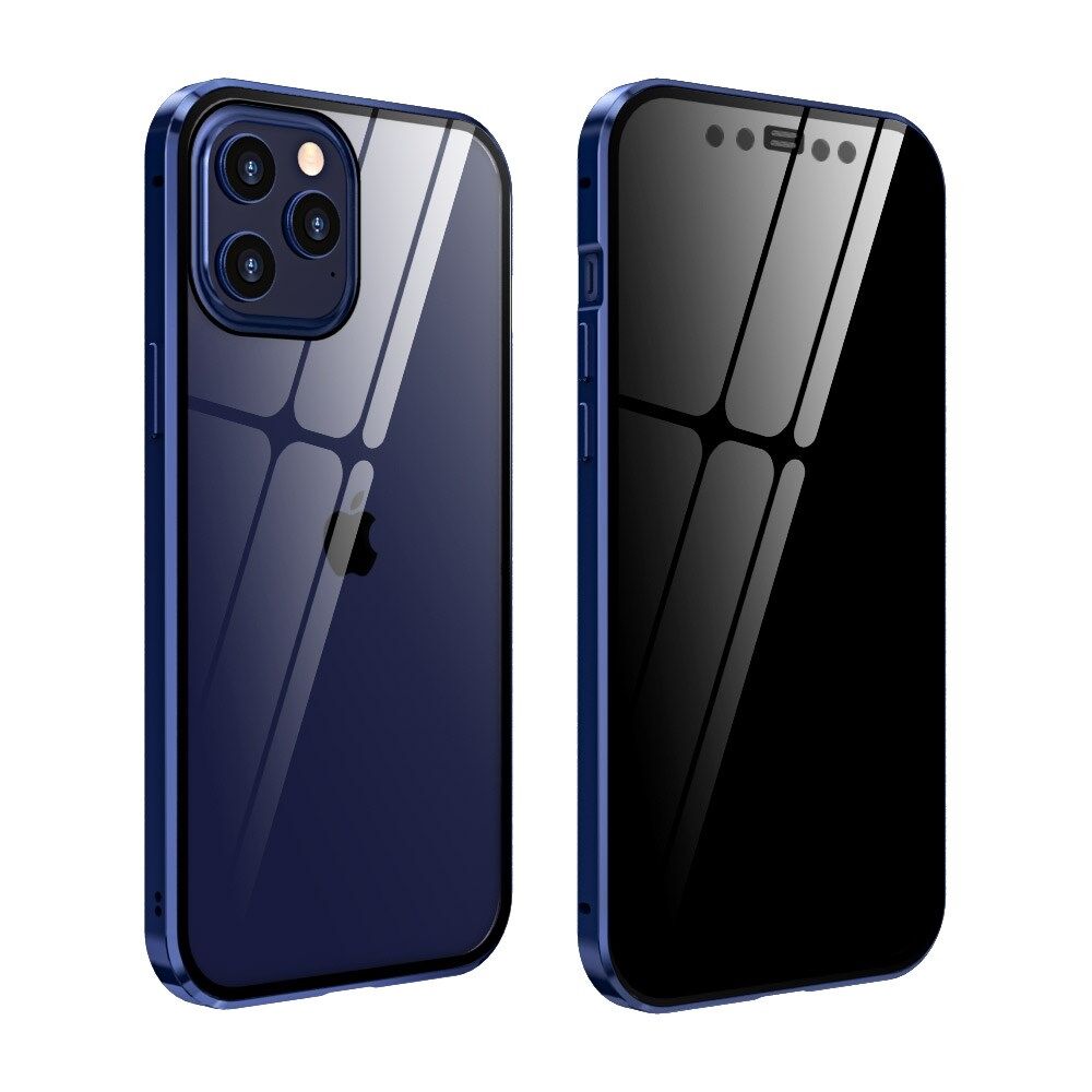Magnetic Metal Frame + Double-sided Tempered Glass Case for iPhone 12 mini Anti-peep Shell - Navy Blue