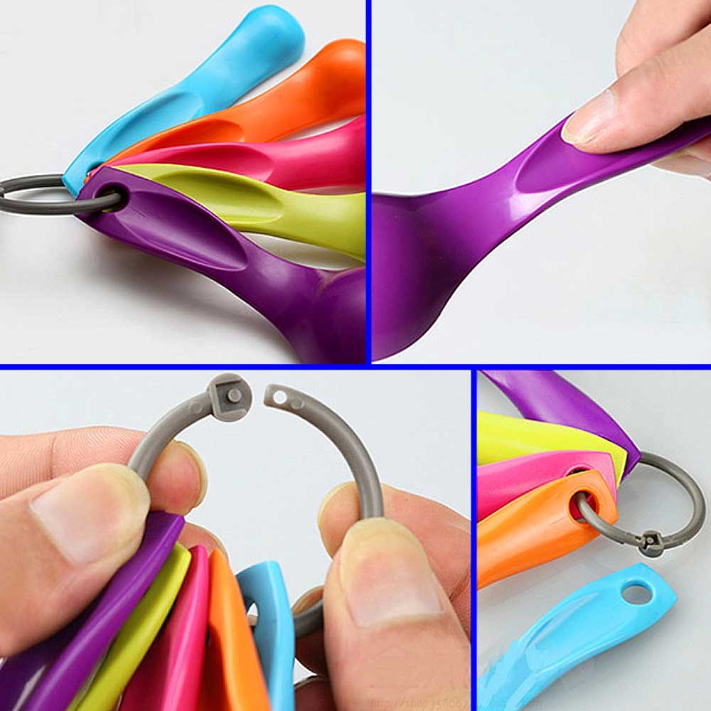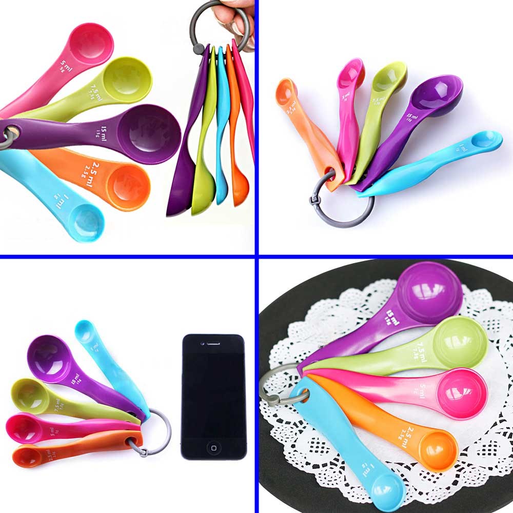 A "Must-have" set for the kitchen with 5 different sized measuring spoons in a colorful design. The color of the spoon indicates the size, which makes it easy and fast to find your target. Not only is it a smart measuring set for the baking enthusiast, it can be recommended for fixed fixtures in your kitchen.