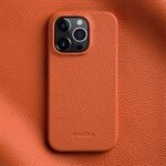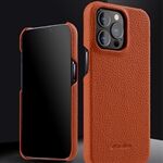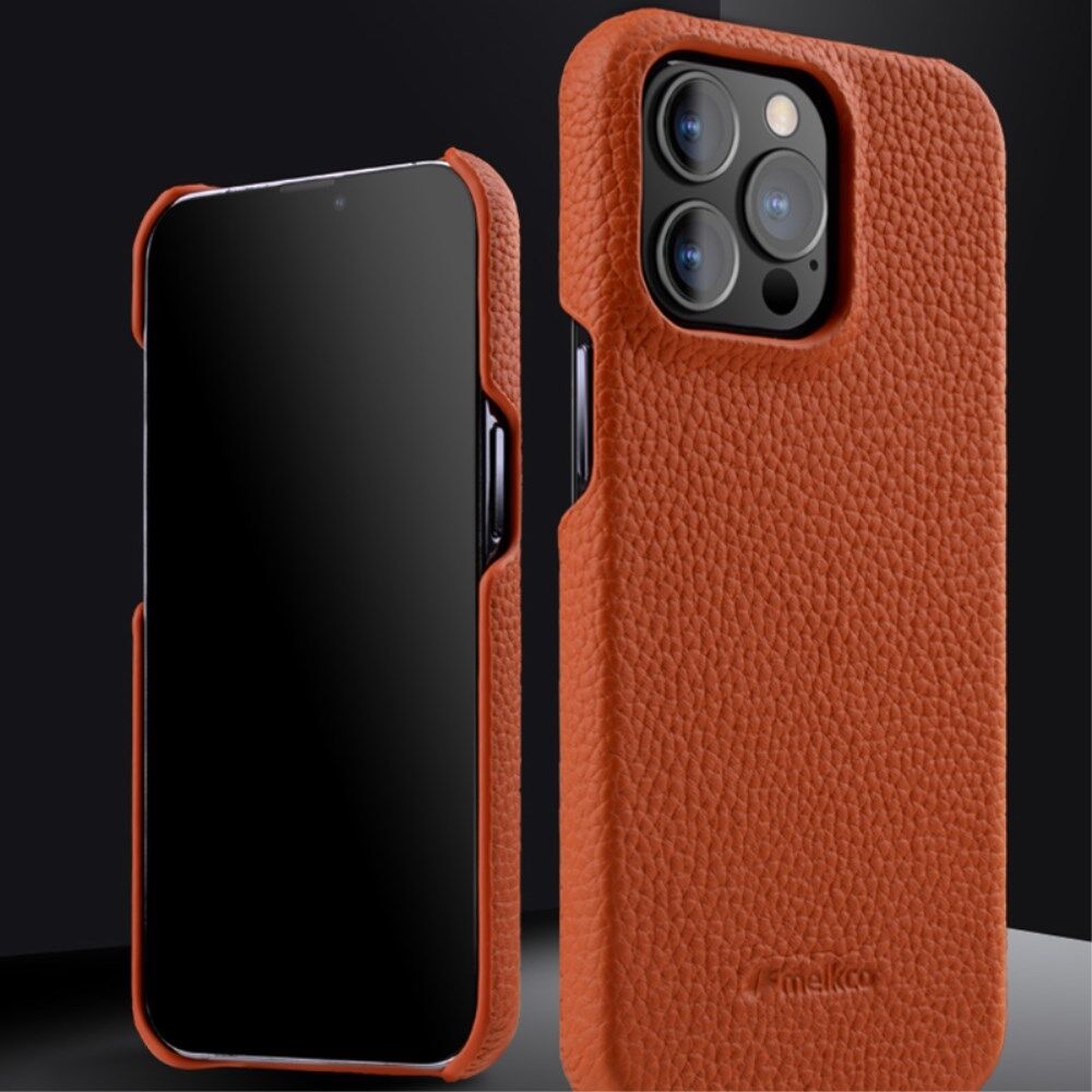 MELKCO For iPhone 13 Pro 6.1 inch Genuine Cow Leather+PC Back Cover Shockproof Phone Case - Orange