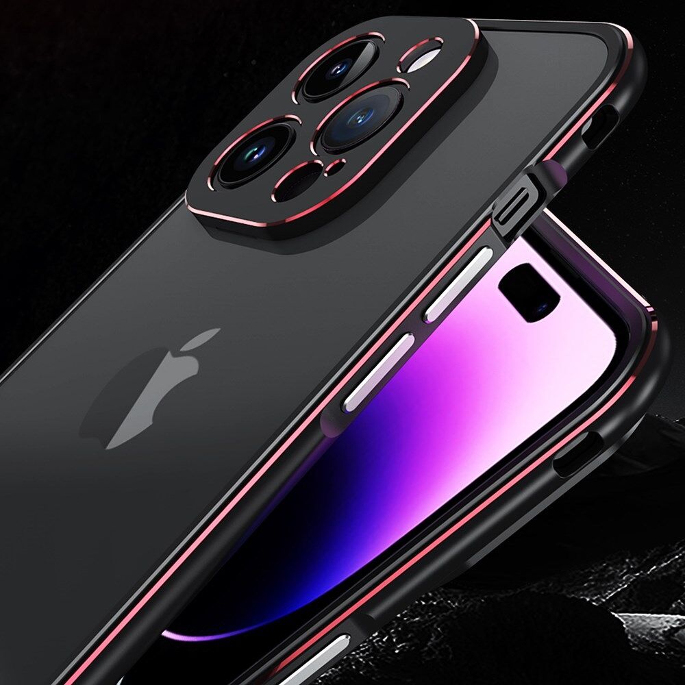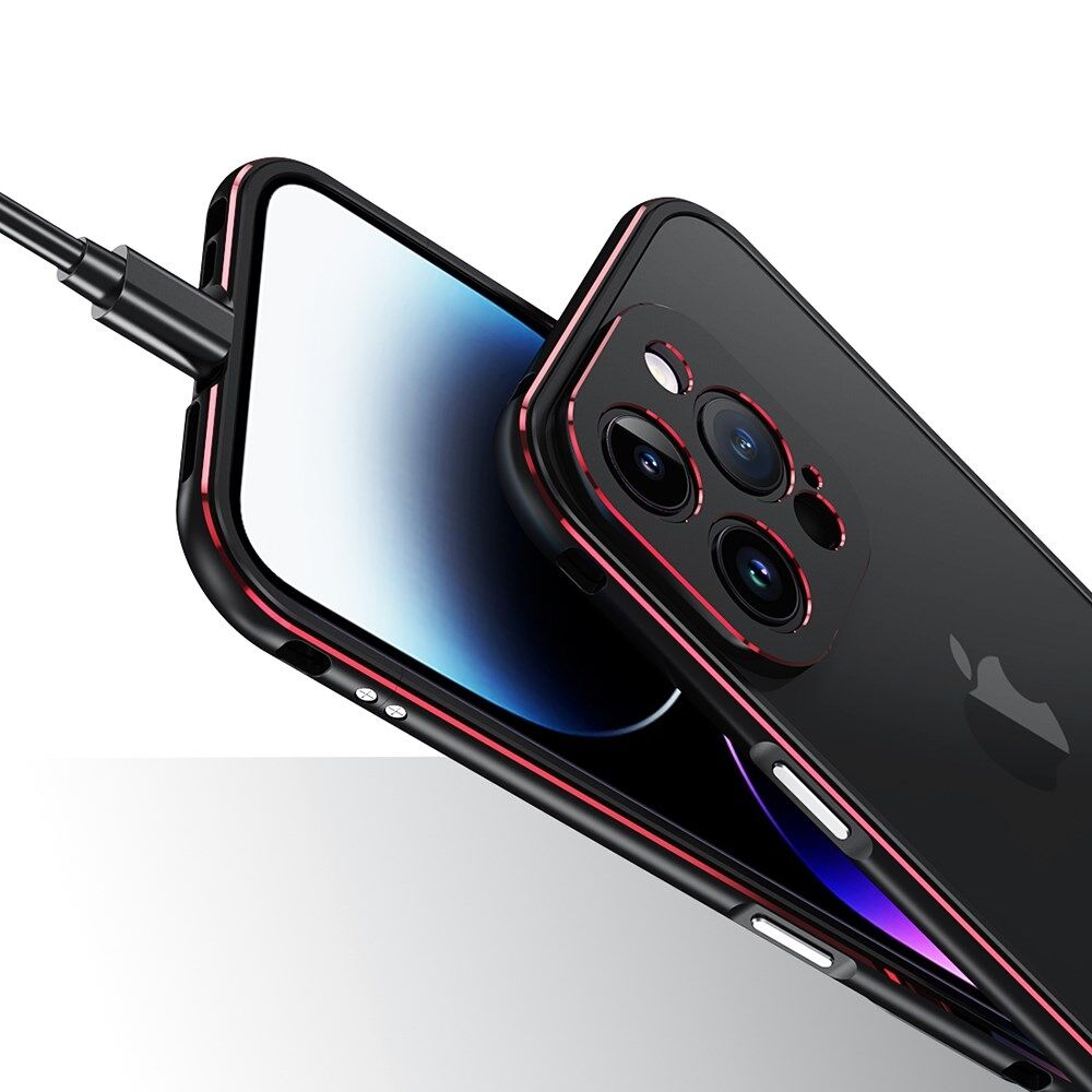 Metal Slim Frame Case for iPhone 14 Pro Shockproof Bumper Case Anti-Drop No-Back Protective Cover with Camera Lens Cover