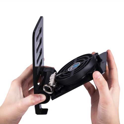 Fashionable. Owing to the artful design, such as the fan holder, power bank and gear wheel design, the fan is very stylish and popular.