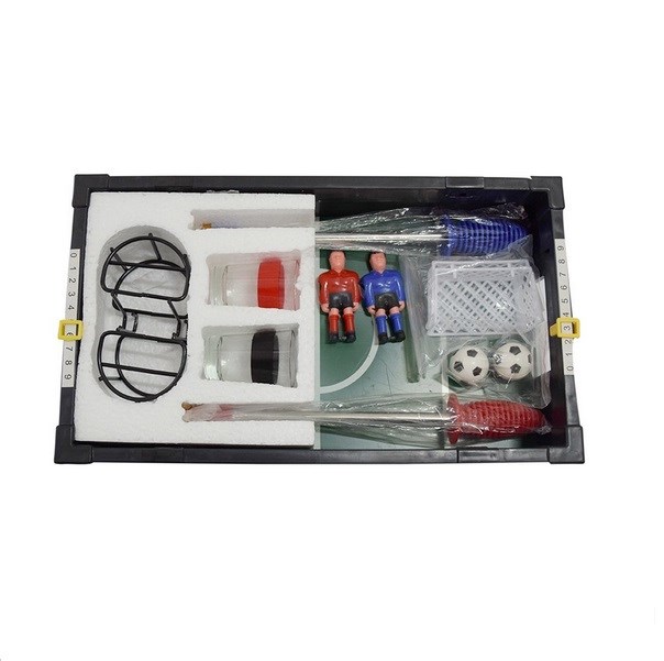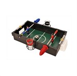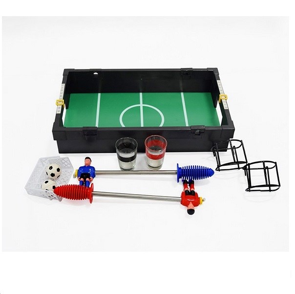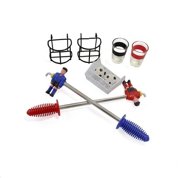 A mini Football Table Game with removable metal holders for a glass for you each.