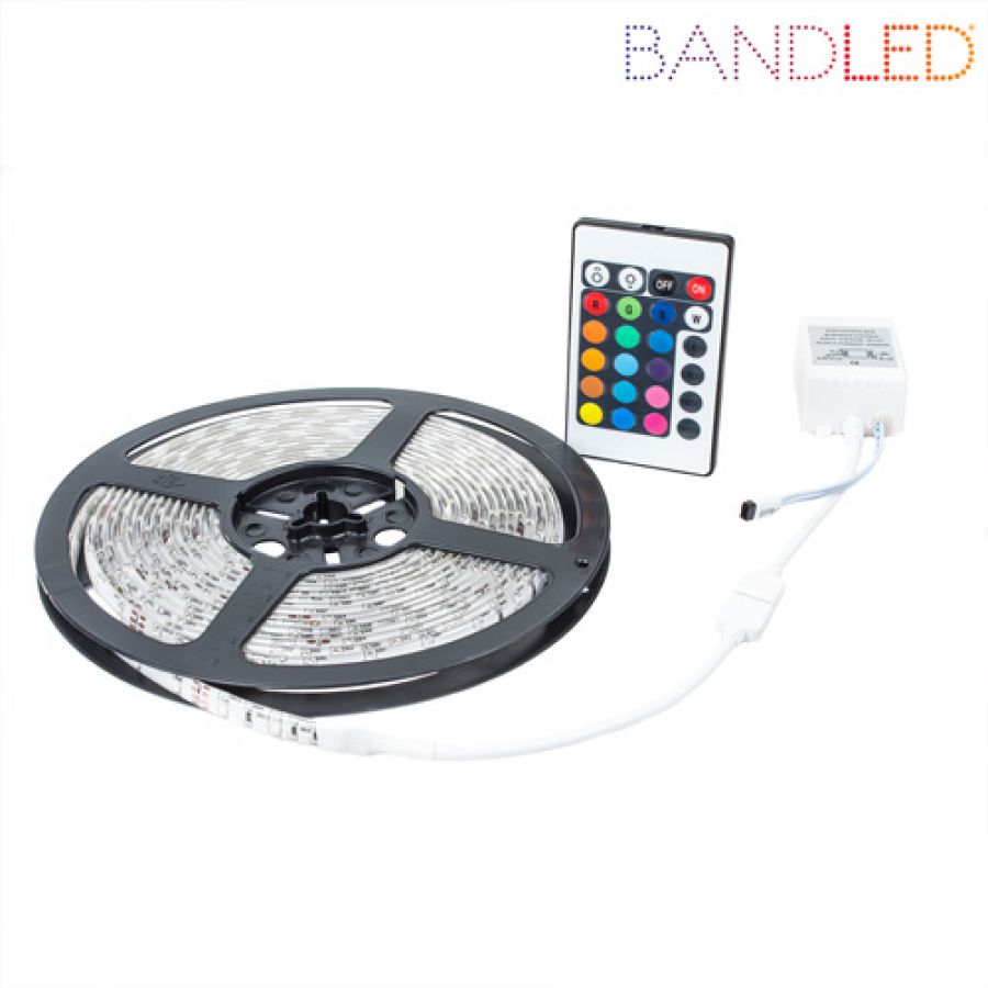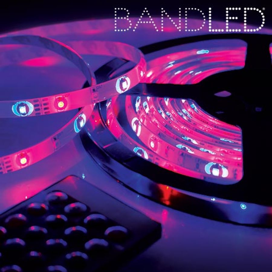 Multi-colored LED strip with remote control for many applications.