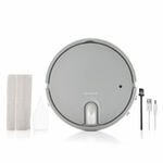 This rechargeable robot vacuum cleaner is ideal for a full and deep clean thanks to its five functions: it vacuums, brushes mops, humidifies, disinfects. On/Off touch button, 2 washable mops, dosing bottle, mini cleaning brush and USB cable.
