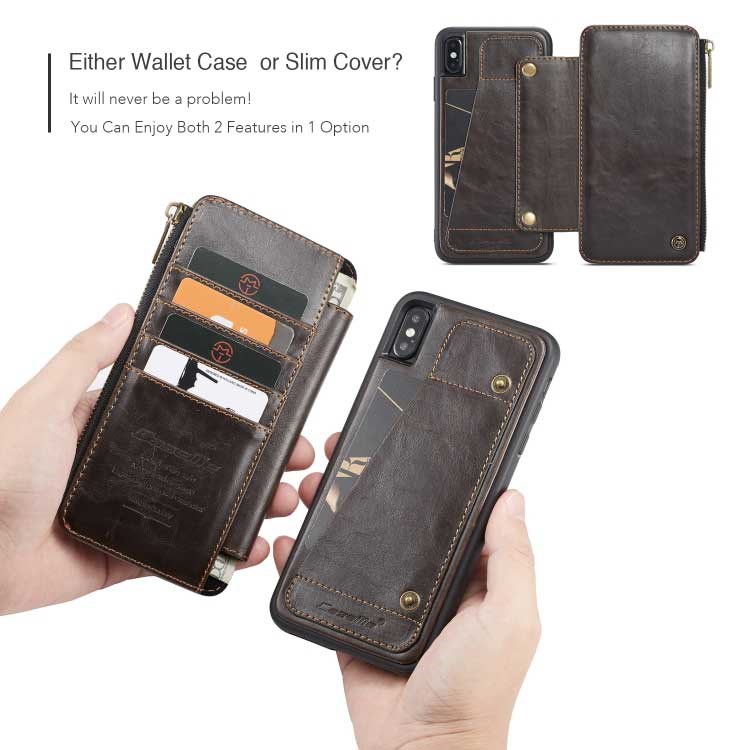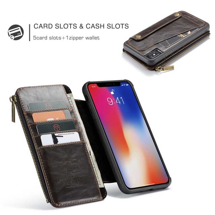 Multifunctional CaseMe leather wallet case for iPhone XS Max - Brown