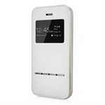 There is a window integrated into the case that can show clock, who is calling, phone message and other.