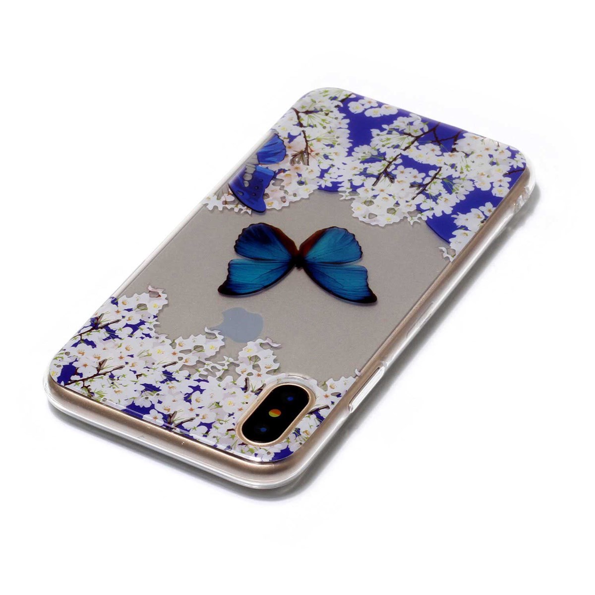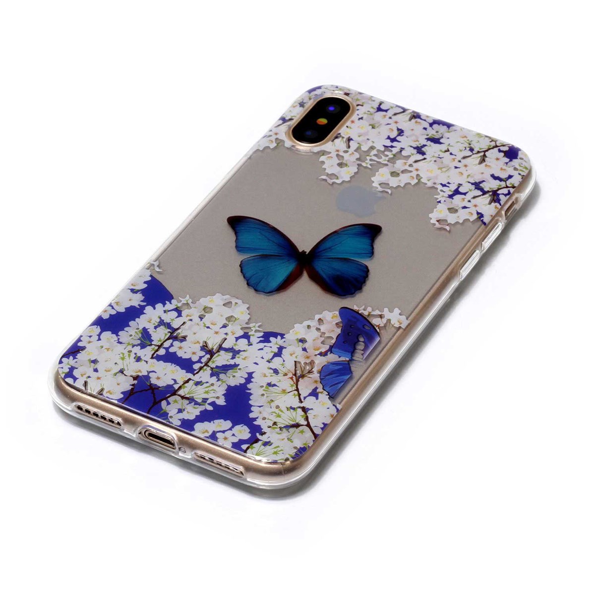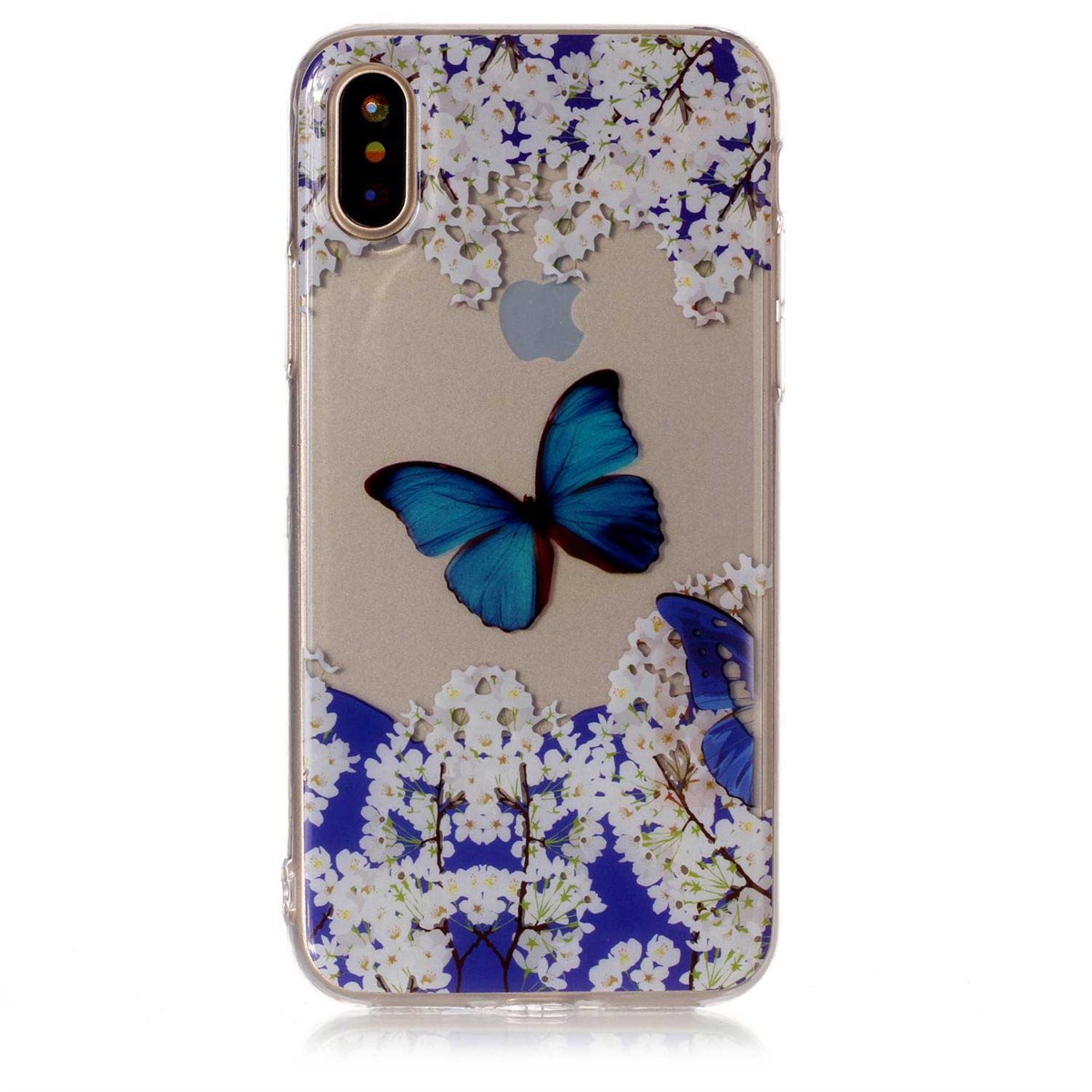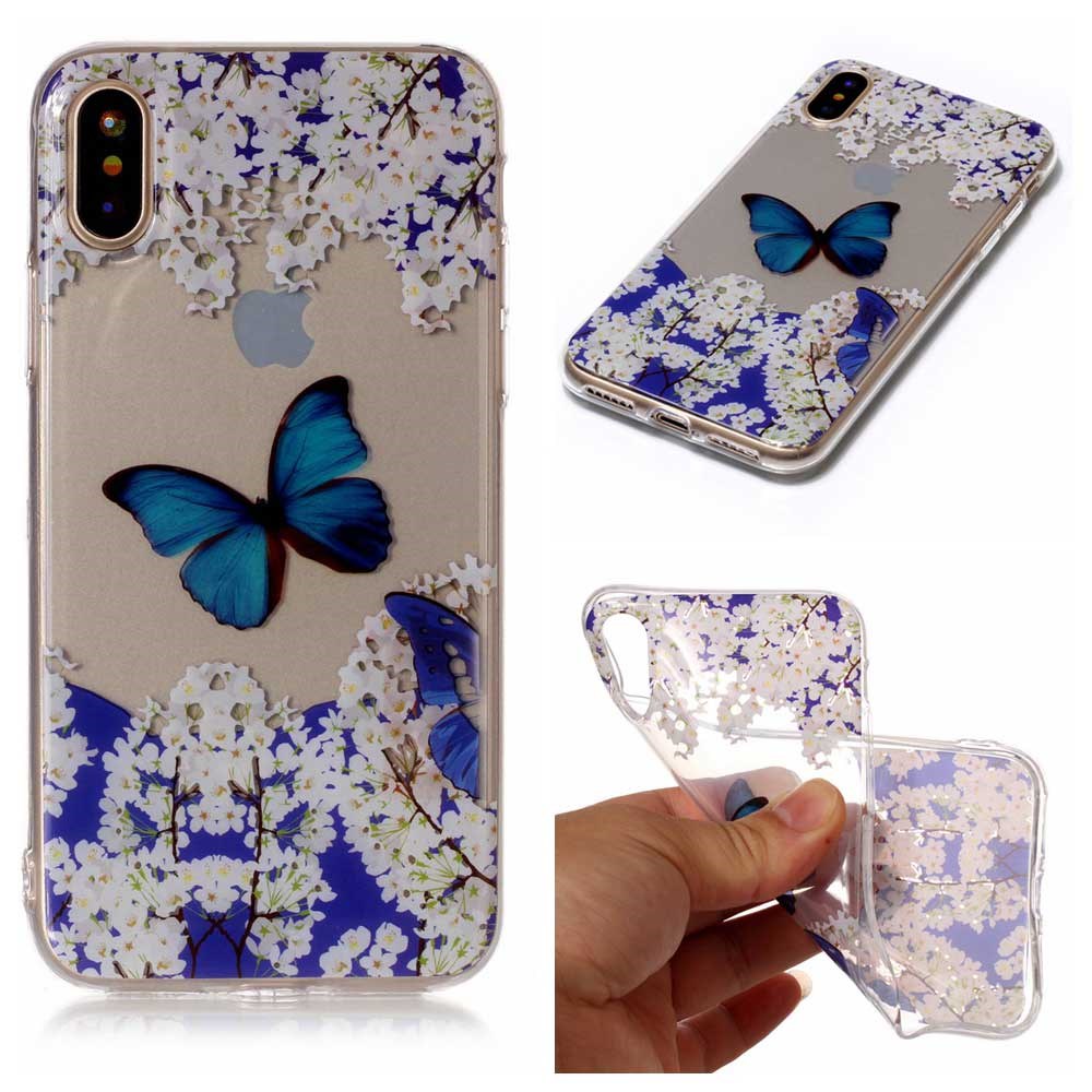 Nice Design Cover in Soft TPU Plastic for iPhone X / iPhone Xs - Blue Butterfly