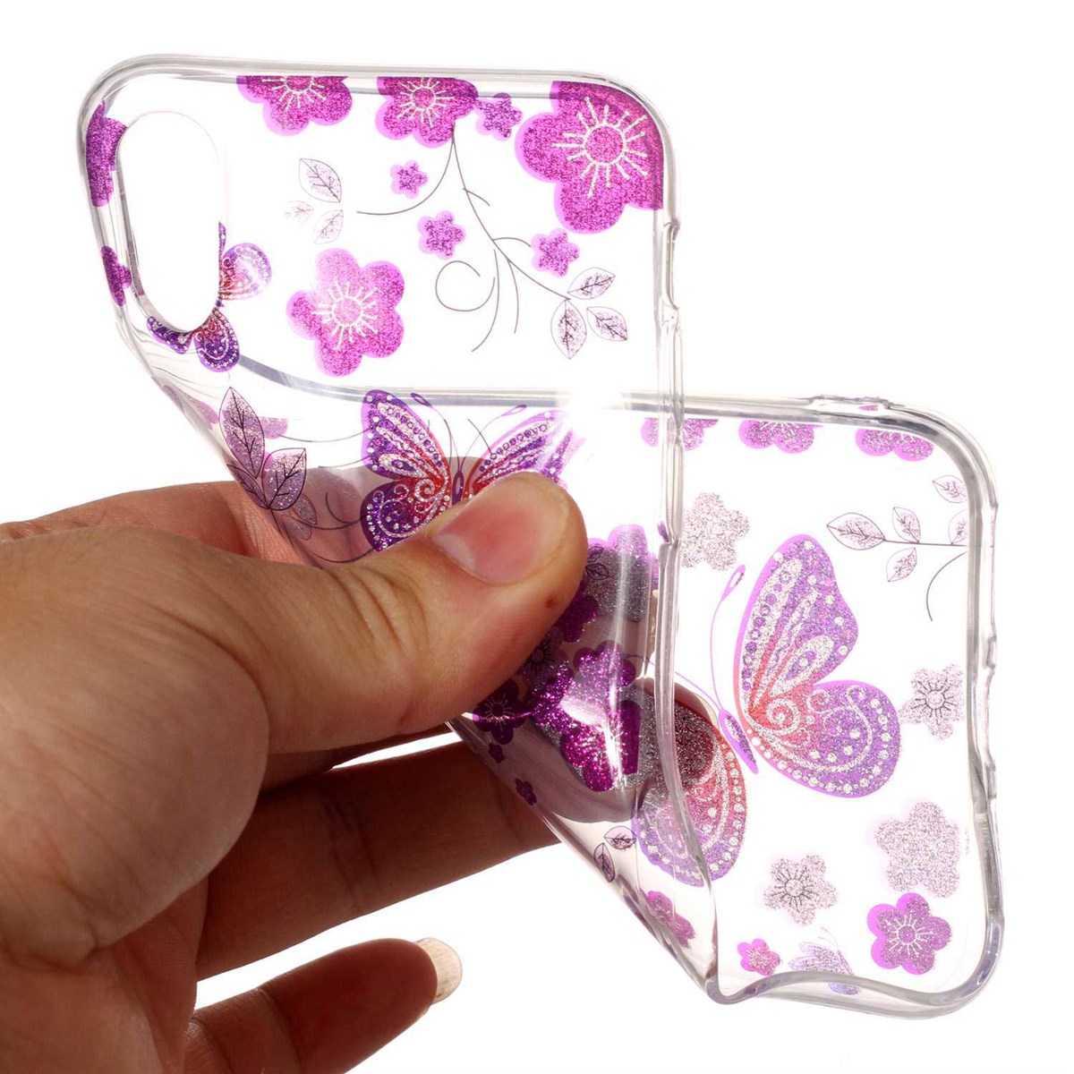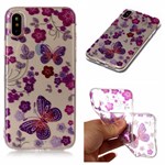 Nice Design Cover in Soft TPU Plastic for iPhone X / iPhone Xs - Purple Butterflies