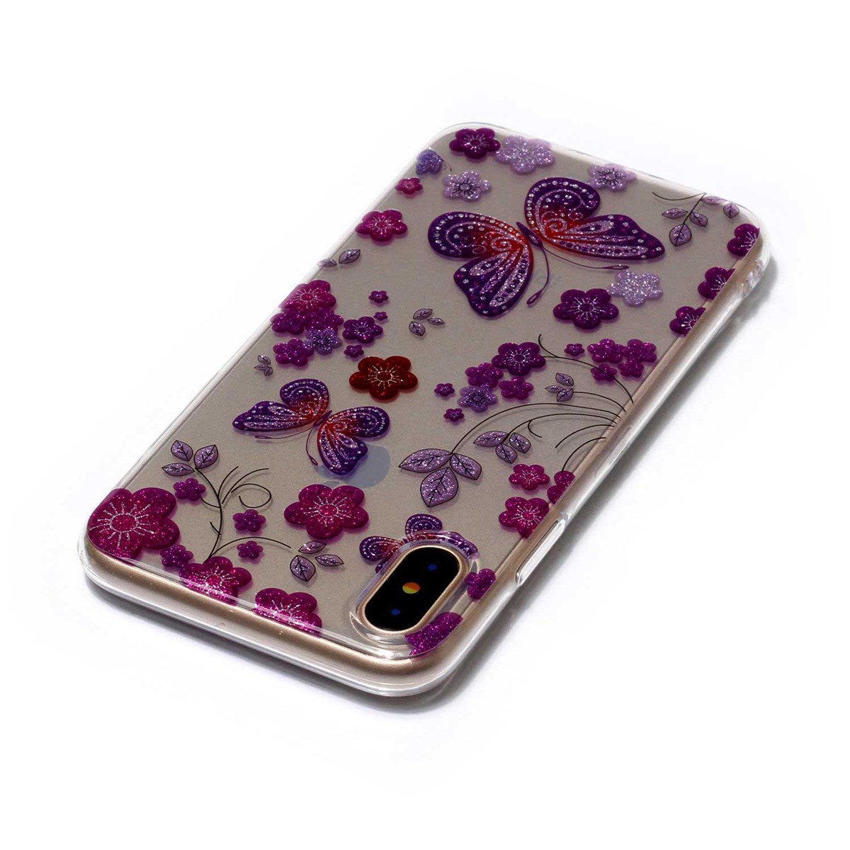 Nice Design Cover in Soft TPU Plastic for iPhone X / Xs - Purple Butterflies
