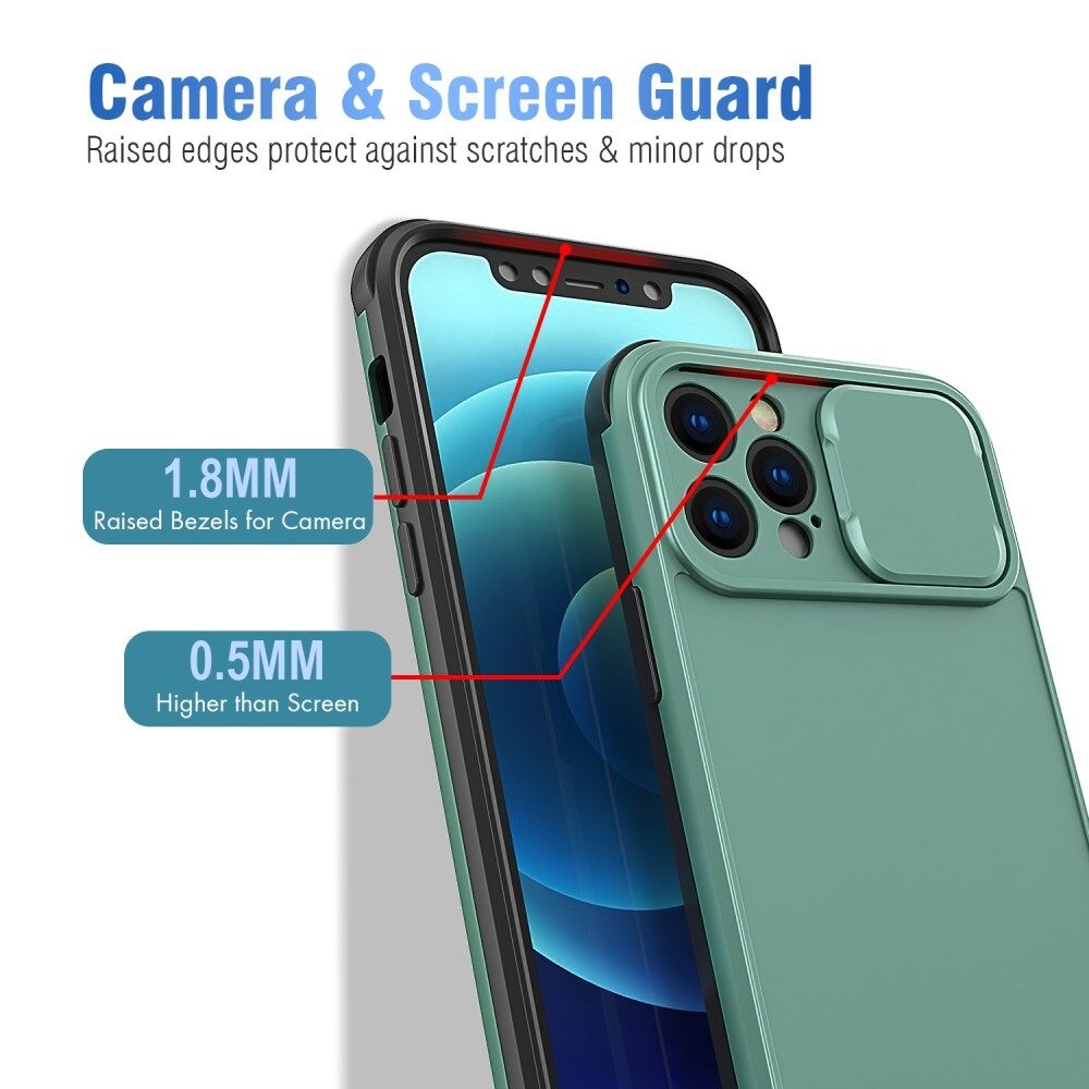 Non-Slip Design Good Slide Camera Lens Protection Shockproof Phone Case for iPhone 12 Pro 6.1 inch - Dark Green