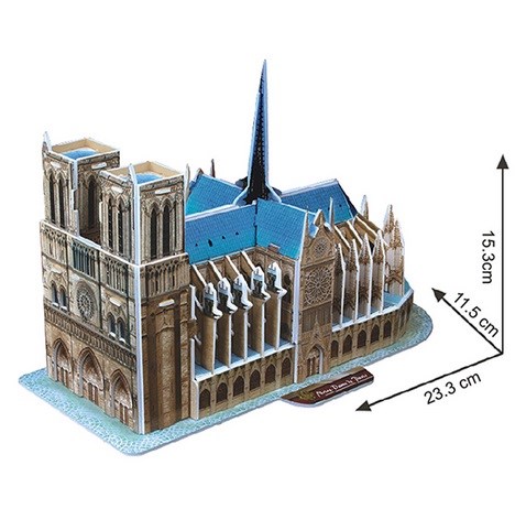 A great copy of Notre Dame in 3D, which you can easily collect yourself. The pieces are clicked together without the use of glue and tools. The 3D puzzle consists of 40 pieces, which are built on a foam board.