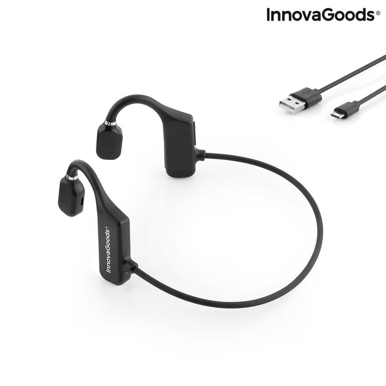 Open ear Sports headphones which play the sound near the ear without obstructing it, enabling you to also hear the surrounding ambient sound. They are safer for walking or doing sports outdoors since they don’t prevent you from hearing nearby sound from vehicles, people etc. Thanks to their ergonomic open ear design, they fit perfectly to the ear and are very comfortable and easy to use, without rubbing or causing any annoyance. Their hook shape provides a complete and safe fit. These modern wireless and rechargeable headphones are compact, ultra lightweight and splash and sweat resistant (IPX4). They feature Bluetooth 5.0 with a reach of up to 10m, an inbuilt microphone and hands free function. Ideal for listening to music or answering phone calls in total comfort while doing sport, walking, running, working out in the gym, climbing, hiking, etc. Includes USB to micro USB charging cable.