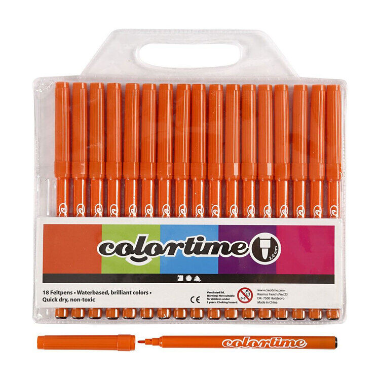 Water-based marker with strong hiding power, dries quickly and equipped with a safety cap. Contents: 18 orange markers. Line width: 2mm.