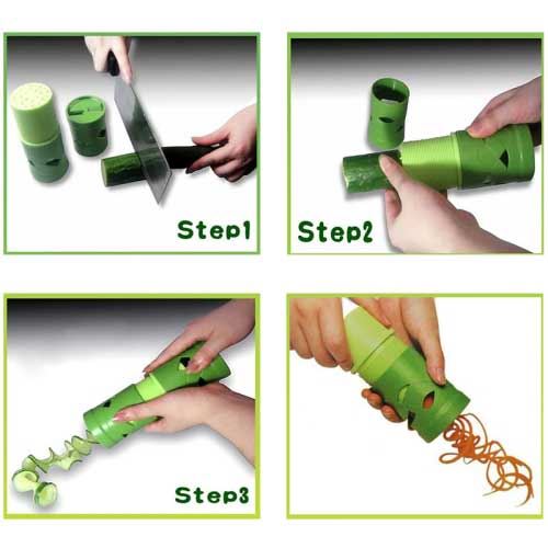 Vegetable twister turns ordinary vegetables into spaghetti or endless spirals.
