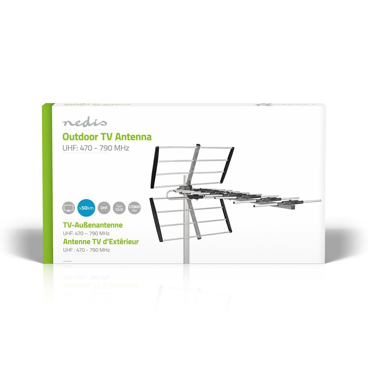 The Nedis® outdoor TV antenna with easy click system is suitable for receiving DVB-T / T2 and UHF signals. The integrated LTE800 filter reduces 4G signal interference.