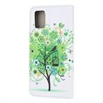Pattern Printing Cross Texture Leather Wallet Case for Samsung Galaxy A41 (Global Version) - Green Tree