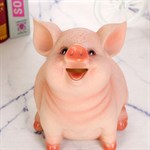 The piggy bank is made of resin silicone and the details are hand-painted.