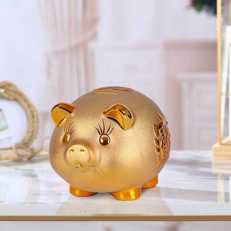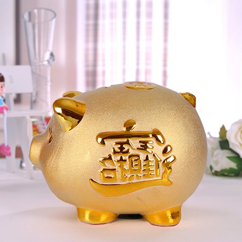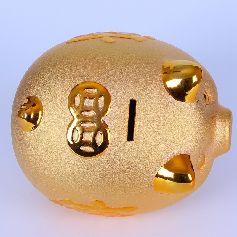 - Charming gold colored piggy bank