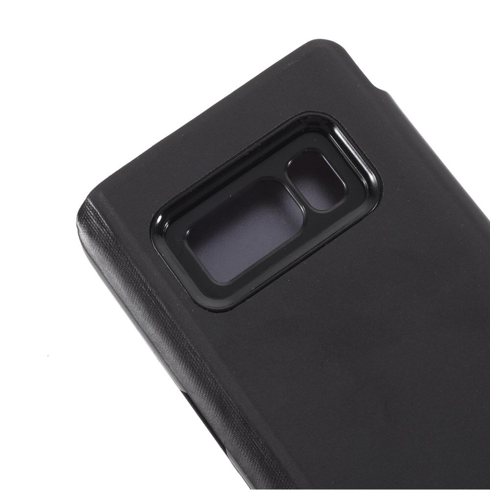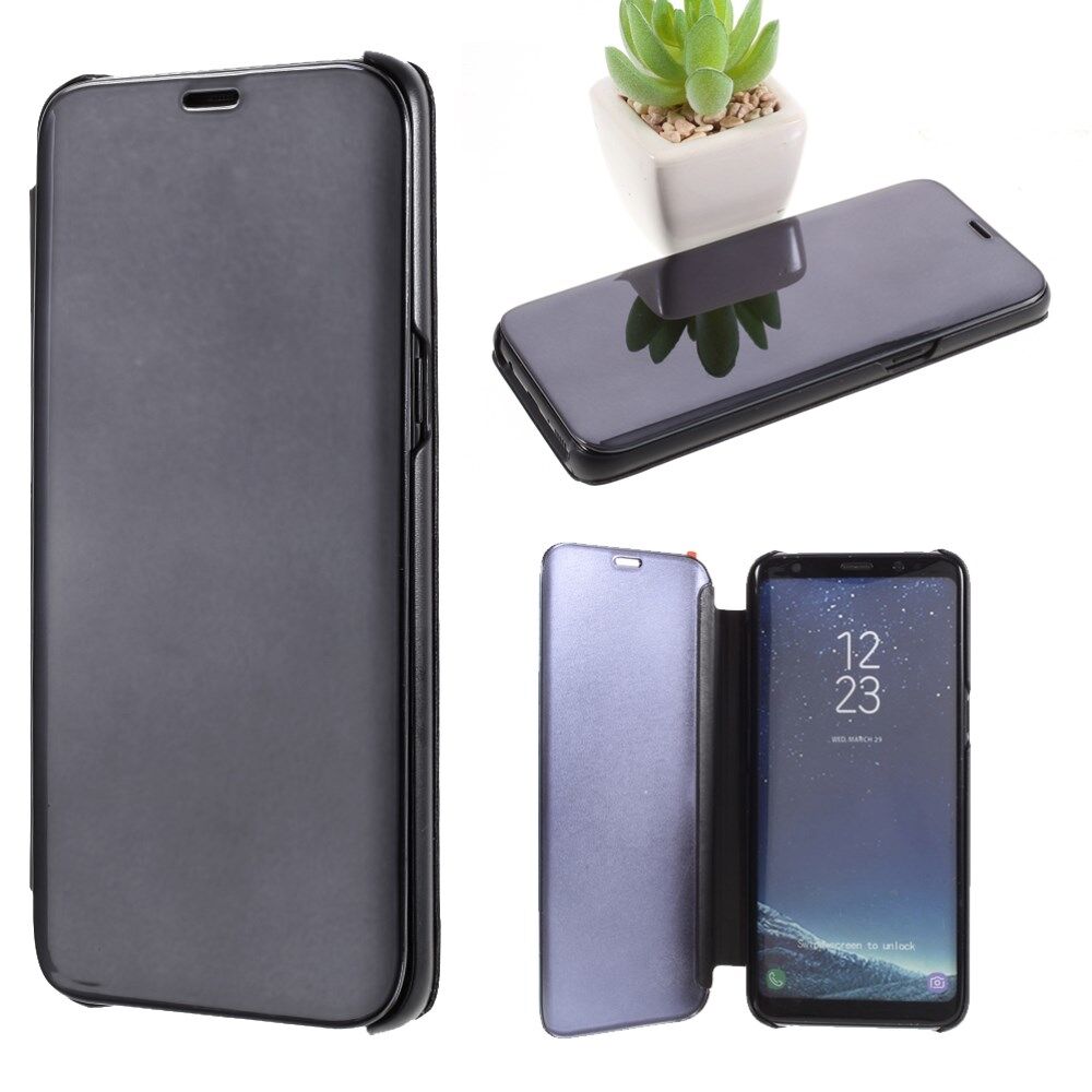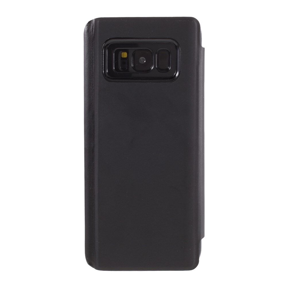 Plated Mirror Surface LeatherPhone Case View Window Stand Shell for Samsung Galaxy S8 G950 - Black