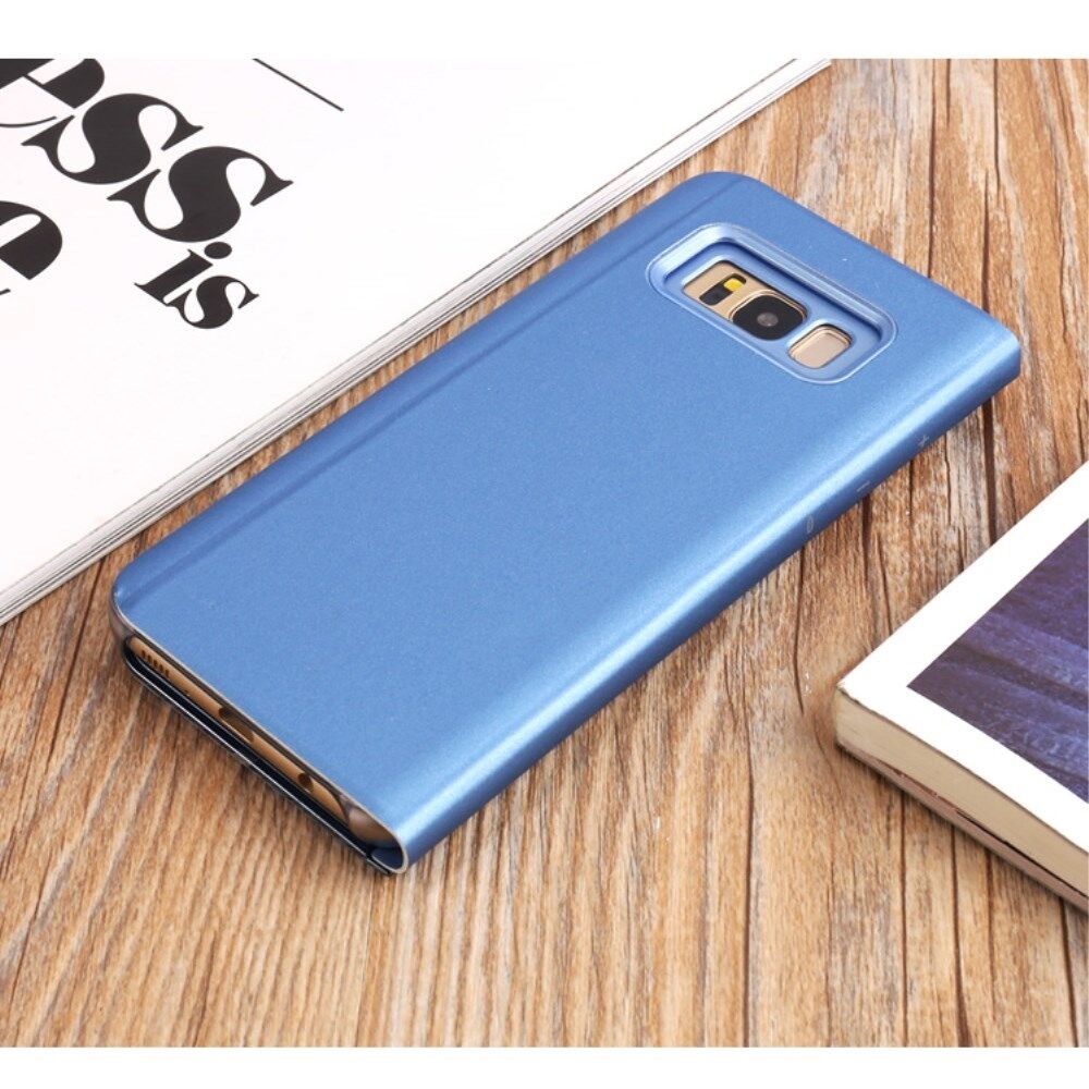 Plated Mirror Surface LeatherPhone Case View Window Stand Shell for Samsung Galaxy S8 G950 - Blue