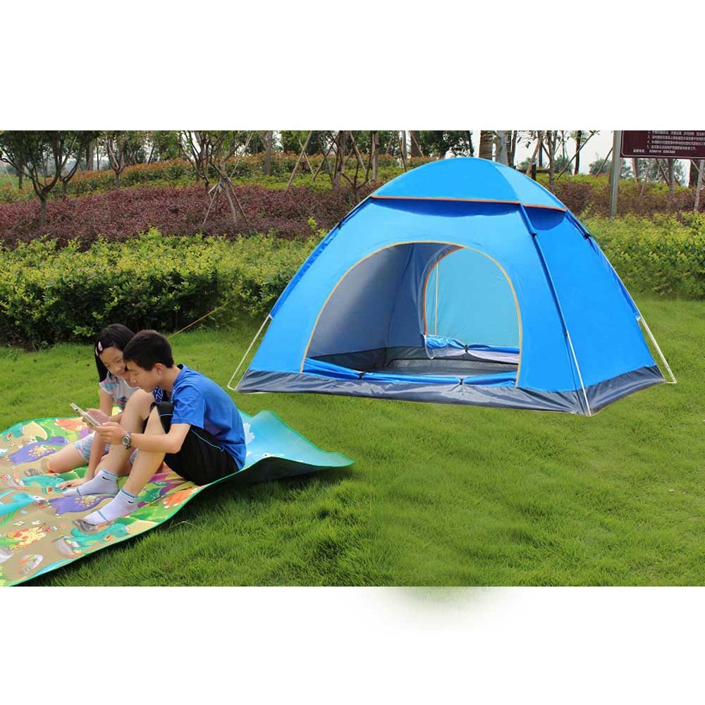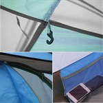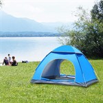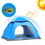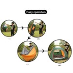The tent unfolds automatically and is fixed with 8 metal wire picks. This tent measures 1.9 x 1.3 meters and 1.35 meters in height, and is for 2 people.