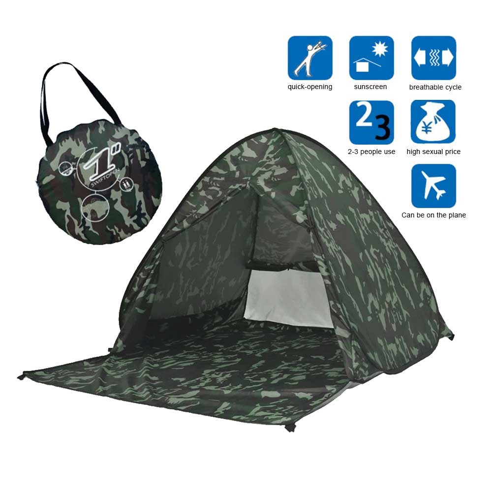 A design that automatically unfolds with a zipper closure and a large rear vent opening that provides a comfortable air circulation when you stay in the tent.
