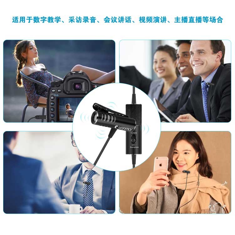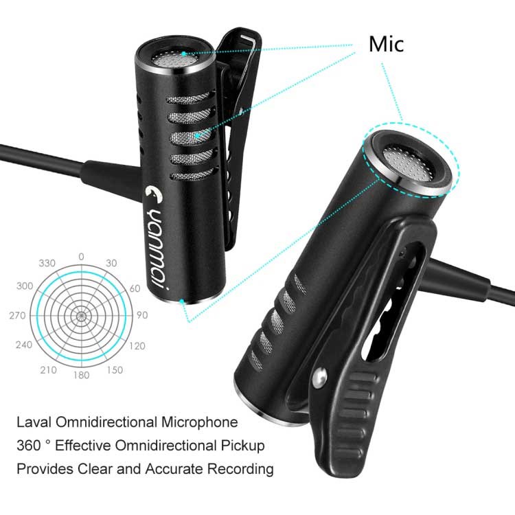 Professional Clip-on Microphone with 6 m Cable for Smartphone and Camera