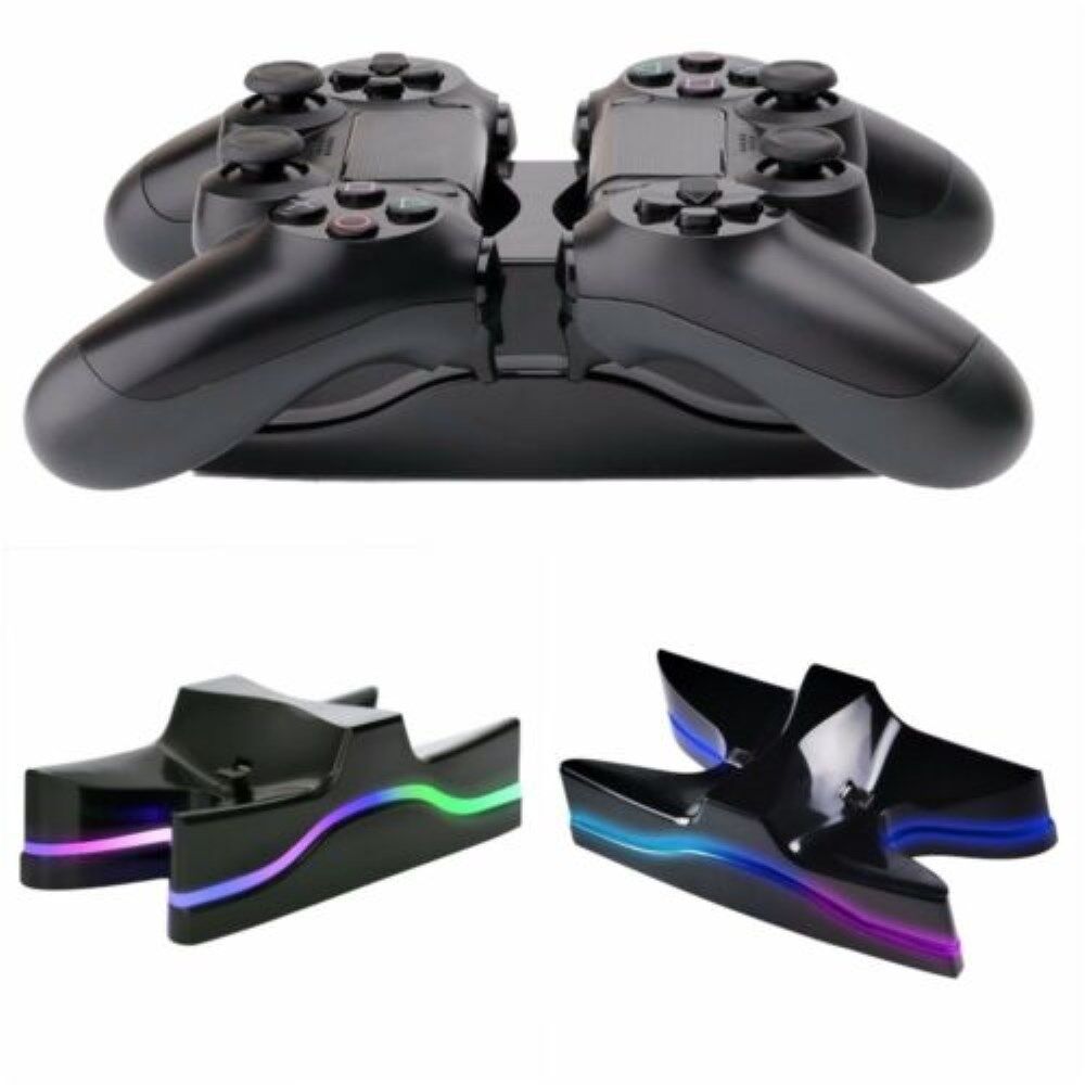 PS4 LED Light Controlled Dual Charger Station USB LED Charging Stand Dock - Black