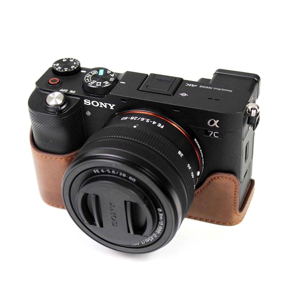 PU Leather Camera Half Cover Case for Sony A7C Camera