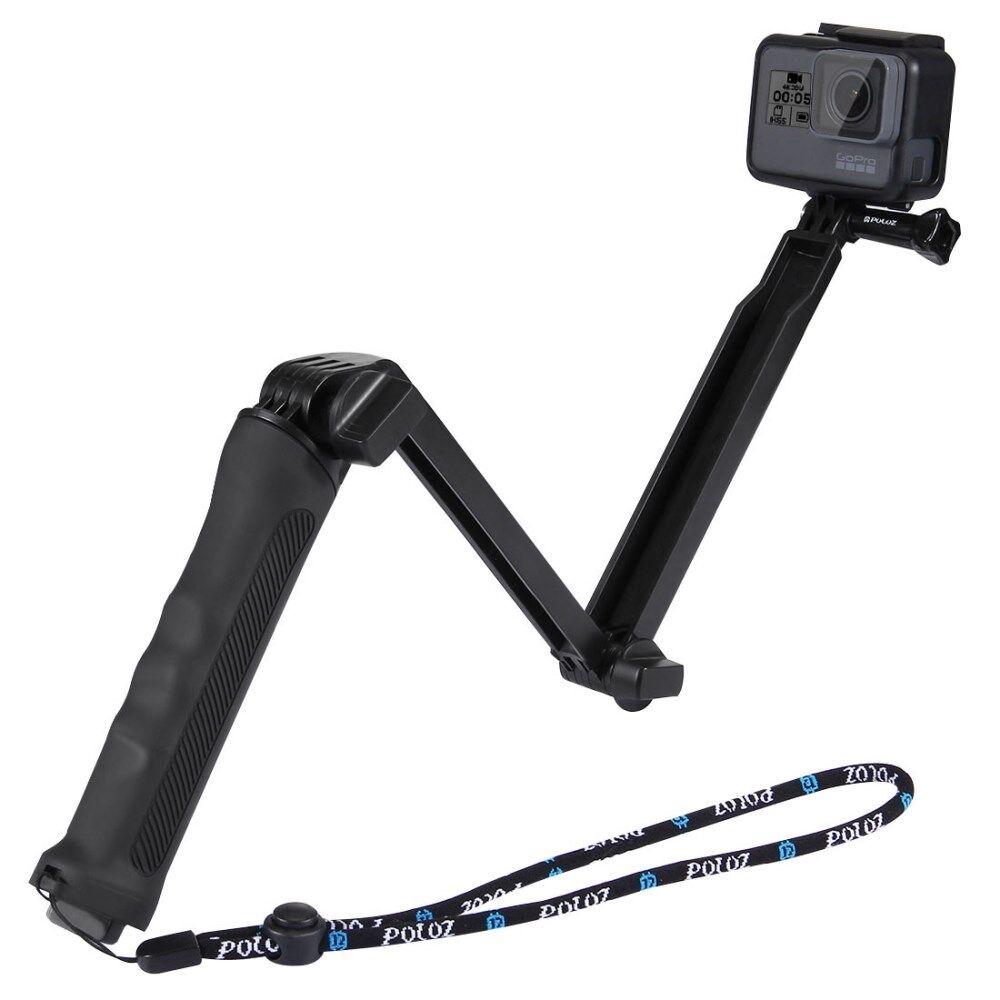 PULUZ 3-Way Grip Foldable Multi-functional Selfie-stick Extension Monopod with Tripod for GoPro New Hero/Hero7/6/5/5 Session/4 Session/4/3+/3/2/1 DJI Osmo Action Xiaoyi