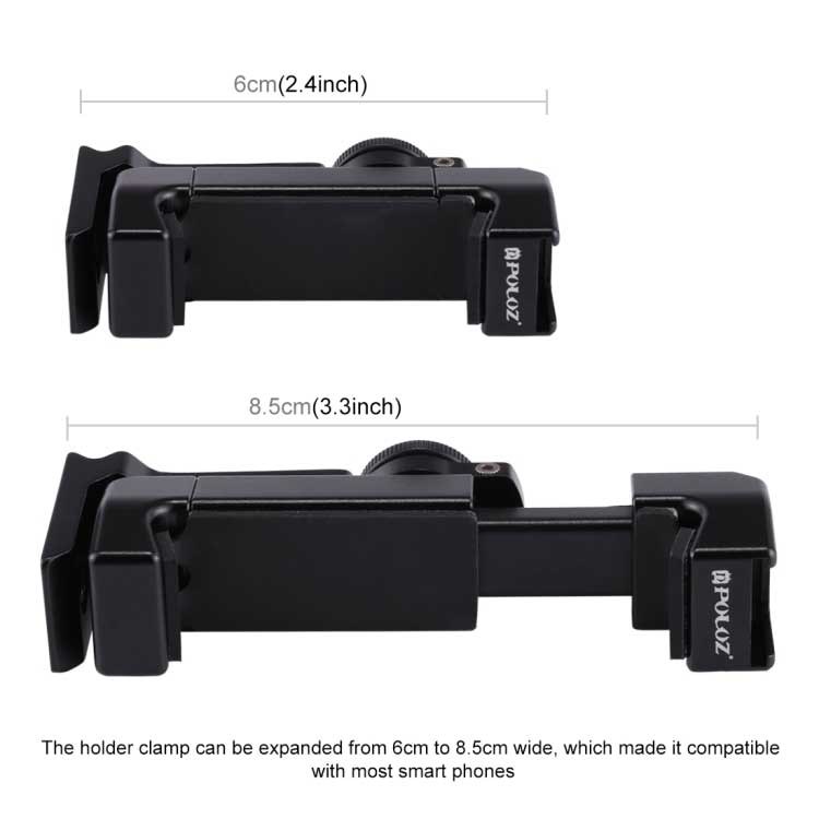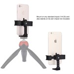 The mobile clamp can rotate 360 ° until your phone can be in the vertical or horizontal position without having to remove the holder. At one end of the Mobile Clamp you can mount a microphone or camera light via a hot Shoe adapter (not included).