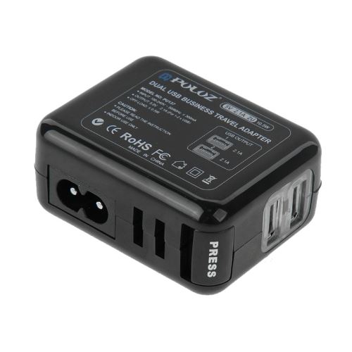 1. Dual USB ports 2.1A wall charger set with 4 connectors (AU, EU, UK, US).