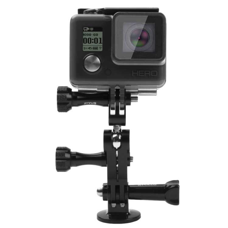 A simple and durable metal design measuring 8.2 x 5.2 x 1.6 cm. An easy mount with ball joint for 360 ° rotation of your GoPro camera.