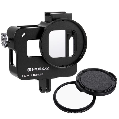 PULUZ Housing Shell CNC Aluminum Alloy Protective Cage with 52mm UV Lens for GoPro HERO5