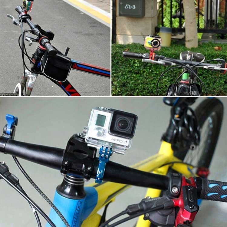 The design is lightweight and simple in aluminum and allows you to have your camera on the bike ride and get fun footage of your experiences. A 2-piece bracket for mounting on your bike's frame or handlebars and allows for a wide variety of mounting positions and angles of your camera.