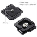 The quick-release plate is compatible with most ARCA and Manfrotto RC2 tripods.