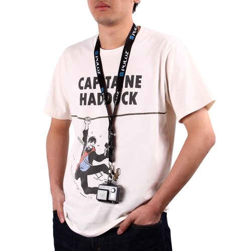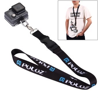 A strong durable necklace, made of soft shiny nylon, with stainless steel hook. The GoPro camera is mounted on the hook with a shackle to secure it. The neck lanyard has a snap buckle in front, which makes the camera quick and easy, removable and on. PULUZ® necklace is extremely handy when traveling around the world, and at the same time it signals that you have your GoPro equipment in order.